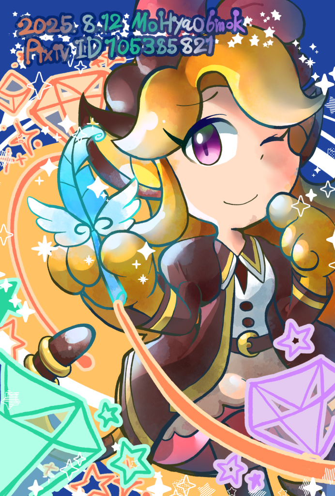 クリスタのポップスタンプ使ってみたいって気持ちでいっぱいスタンプ散りばめました。キラキラになったかなあ。