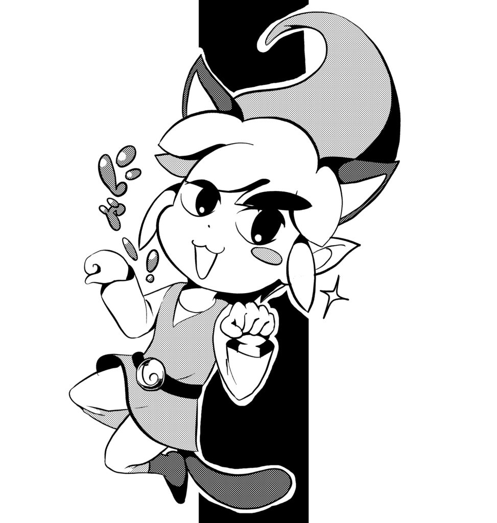 トゥリン。にゃー。猫目リンク、猫目ちゃんとも言われてるみたいでかわいい。地味にトーンとベタのバランスで苦労しました。